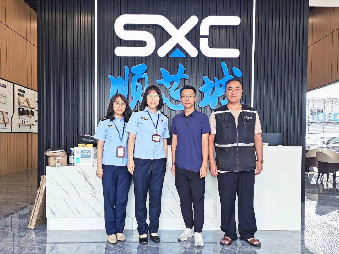 2023年7月10日,顺德区市场监督管理局容桂市场监督管理所审批服务股杨月茵股长、大福基社区党委委员曾联庆莅临顺芯城参观交流,公司总经办参与接待。